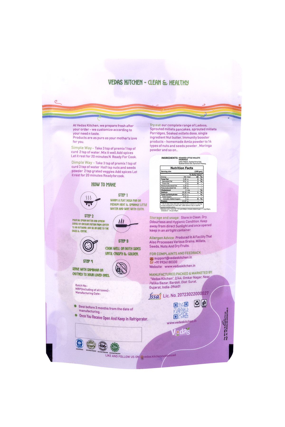 (A gentle, iron-rich dosa premix crafted from soaked little millets and nourishing moringa)