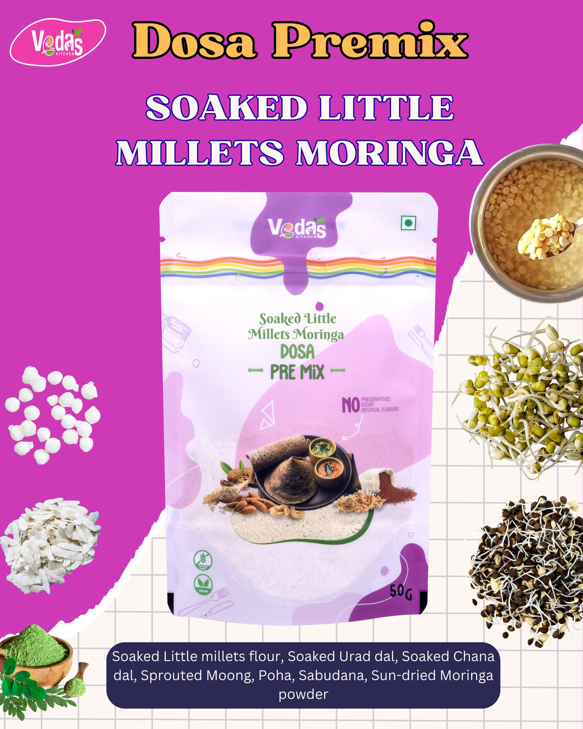 SOAKED LITTLE MILLETS MORINGA DOSA PREMIX - Sample Pack- 50 GM